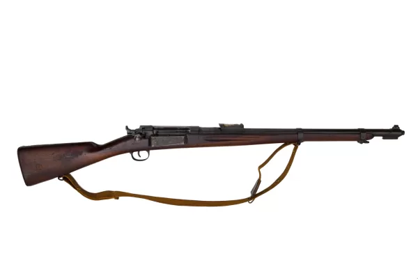 Tato puška opakovací Krag-Jörgensen model 1889/24 c ráži 8 x 58 RD je ve vynikajícím stavu. Jedná se o zkrácenou karabinu model 1889/24. Puška je kompletně sčíslovaná. Vývrt je lesklý, drážky jsou dobře viditelné po celé délce hlavně. Zbraň bez koroze. Dřevo zbraně je zachovalé v původním stavu, bez významných promáčklin. Zbraň byla vyrobena v roce 1898 jako dlouhá puška a posléze byla zkrácena do délky karabiny. Soudě dle datumu výroby hlavně (1941) byla puška používána týlovými jednotkami Německého Wehrmachtu. Zajímavá zbraň pro všechny fanoušky zajímavých konstrukcí a nádherného zpracování.